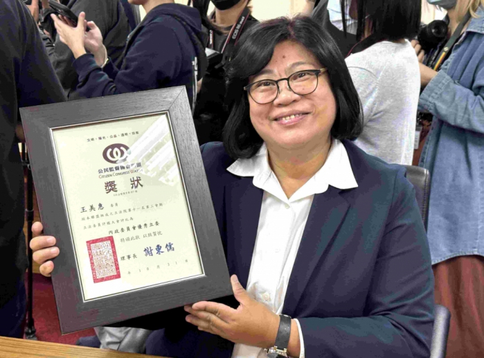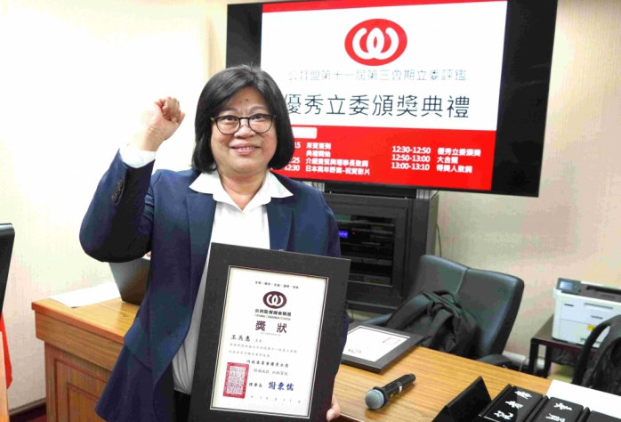 立委王美惠表示,感謝公督盟及各評鑑單位的肯定,問政認真是本份,但每一次的肯定,都是她最大的榮耀,也是最強的鼓勵。