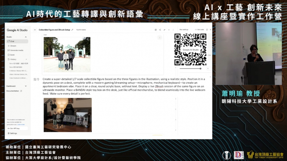 〔記者林碧珠大村報導〕﹁台灣頂級工藝協會﹂與大葉設計系攜手舉辦﹁AIx工藝,創新未來﹂線上工作營,探索AI技術在當代工藝創作與設計應用的可能。