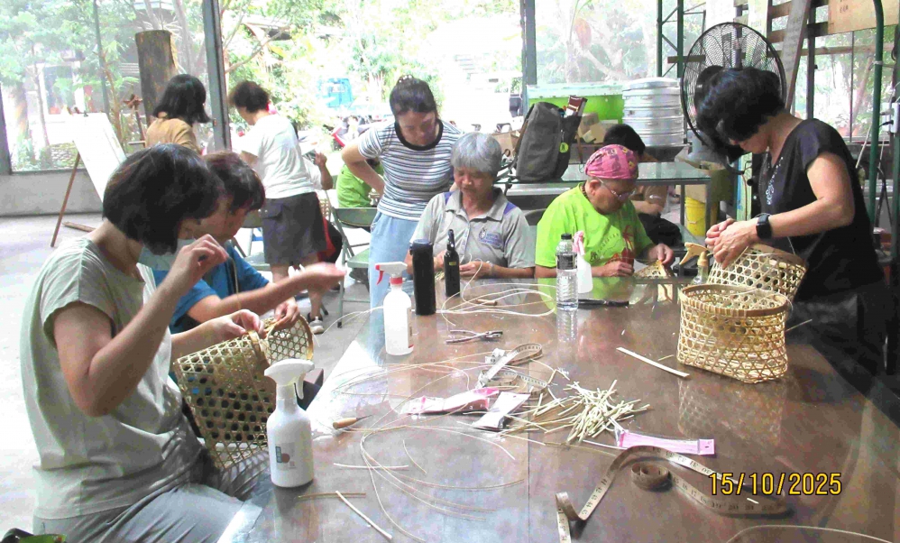 兩位老師已連續第二年參與課程,憑藉深厚的竹藝功底與豐富經驗,帶領學員從刮青、剖竹、定寬、倒角到六角籃體編織與天然生漆塗抹,完整體驗竹藝創作的流程與工法之美。