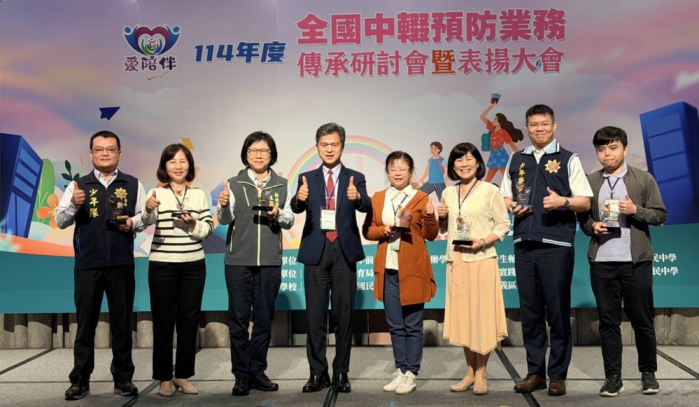 【記者 彭可/新北報導】教育部今(14)日於臺北市凱達大飯店舉辦「114年度全國中輟預防業務傳承研討會暨表揚大會」,由國教署署長彭富源表揚全國各地致力於兒少中輟預防及復學輔導之績優機關及第一線人員,新北市政府警察局少年警察隊連續7年獲選為全國行政機關組績優單位,以「尋回、陪伴、重建信任」為核心理念,展現警政結合教育與社福跨域合作的成果。