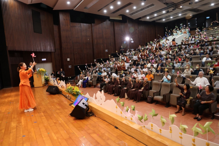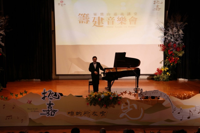 常存法師致詞表示,今天的活動不只是豐富多元的音樂饗宴,更是善心善願的聚會,無論表演者還是聽眾,都懷著成就善行的心,為籌建嘉義講堂付出努力。建寺功德,是一本萬利的善業,佛經也指出:「萬人一起造善因,每個人都能得到萬人的果報。」