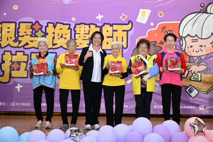 增進長輩腦力運動,提升認知活力,彰化縣府與弘道老人福利基金會攜手在景崧文化教育園區龍江館,舉辦﹁銀髮換數師拉密大賽﹂,王縣長與長輩同樂。