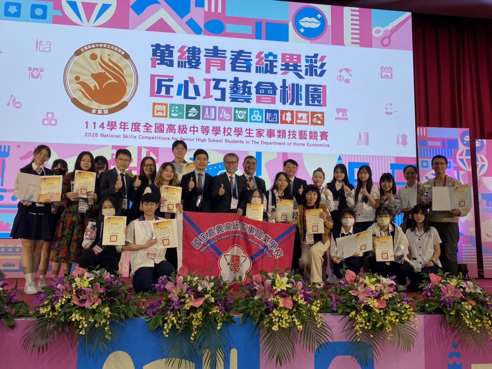 【記者張文一嘉義報導】114學年度全國高級中等學校學生技藝競賽,國立嘉義家事職業學校師成績大放異彩!選手們憑藉務實的態度與勤奮不懈的精神,一舉奪下9座金手獎、3項優勝,其中在「美顏」、「美髮」、「食品加工」三項職種,更囊括了全國第1名的最高殊榮!特別值得一提的是,「食品加工」職種同時包辦了個人獎的第1名與第2名,而「食品加工」與「美顏」職種亦雙雙奪下團體第一名,「美髮」職種則榮獲團體第二名,成果斐然,充分展現嘉義家職「務實致用」的辦學特色與強大的育才實力。