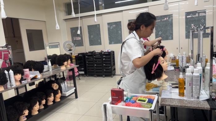 奪得美髮職種全國第1名金手獎的沈梓晴同學,在求學路上做出了一個勇敢的決定—她原本足以進入嘉義女中,卻因為對時尚造型科深感興趣,在家人百分百的支持下毅然選擇就讀嘉義家職。自暑假獲選選手後,她不論晴雨,每天堅持從雲林通勤到校訓練。漫長且艱辛的備戰過程,一度讓她萌生放棄的念頭,但在指導老師的溫暖鼓勵與強力支持下,她將所有的疲憊化為堅持下去的動力,最終在全國賽場上完美綻放,證明了興趣與選擇的力量!