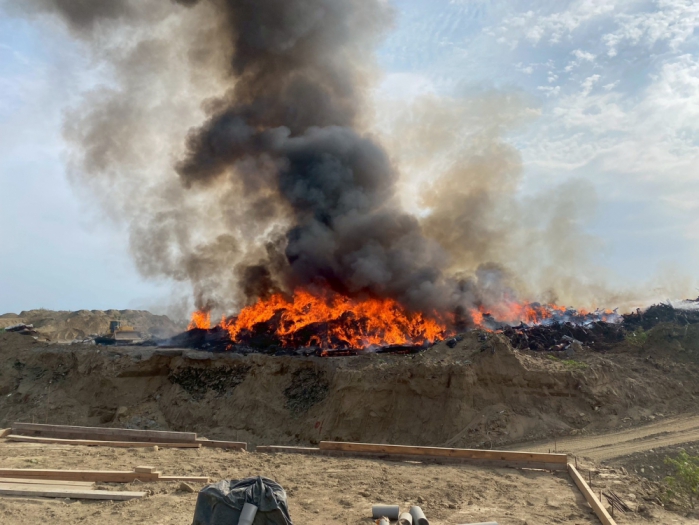 環保局指出,環保用地已設置門禁管控並由保全24小時巡視園區,園區內堆置廢棄物亦有適當區隔,是日於中午12時30分巡查後亦無發現異常,將持續掌握現場狀況。(照片與影片由嘉市消防局提供)