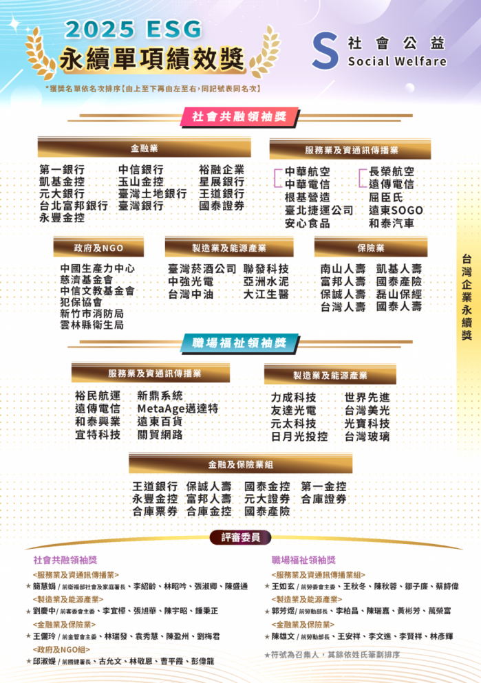 主辦單位示,此獎項評選重點在於永續治理的全面性、政策執行力與長期社會影響力,張縣長在低碳轉型、循環農業、弱勢照顧、醫療提升及韌性城市推動等面向都具體展現施政成果。