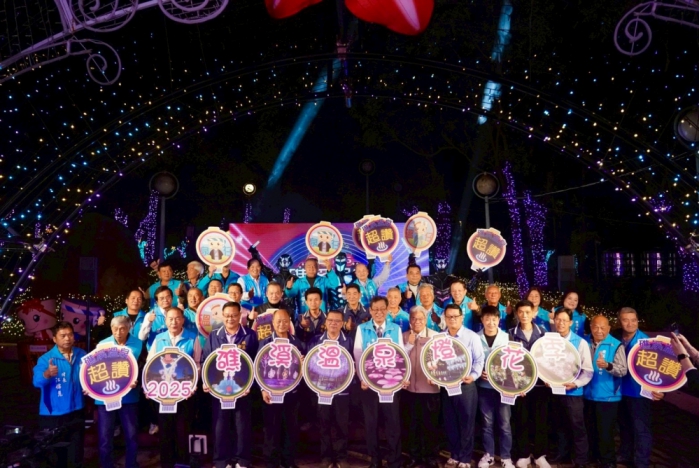 今晚的啟動點燈儀式特別邀請「AI智能生化人LED震撼擊鼓互動秀」登場,結合現代科技與傳統打擊樂,透過璀璨LED燈光、震撼音樂與力道十足的擊鼓表演,帶來視覺與聽覺的雙重震撼,由張永德鄉長宣布「礁溪溫泉燈花季」正式展開。