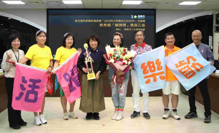 【雲嘉特派員陳信利/嘉義市報導】衛福部國健署於10月在新北市板樹體育館舉辦「長者活躍老化競賽」全國總決賽,匯集各分區金銀隊伍同場競技。嘉義市由育英里辦公處「育英火雞隊」及鳶尾花人文促進協會兩支代表隊出賽,雙雙奪下常勝組及新秀組銅獎佳績!