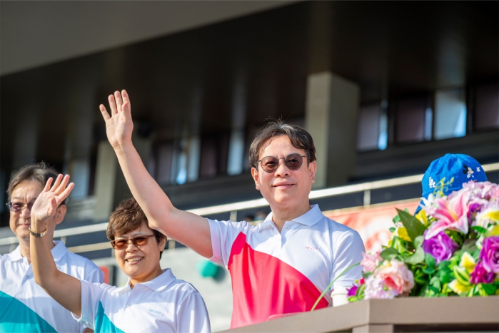 接著由董事會和總院長率領主管級幹部進行「彰基領航」健走,園遊會也熱鬧開張,各式美食和創意攤位吸引員工及家屬參與。