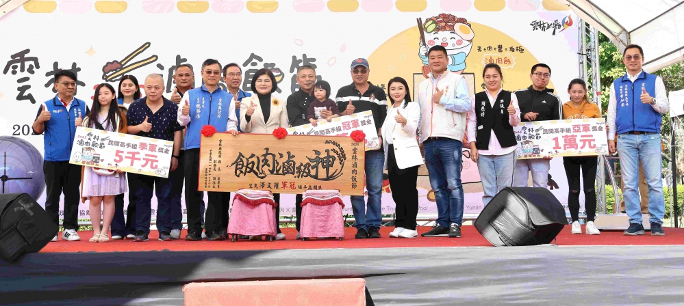 張縣長說,最受矚目的神級滷肉飯爭霸戰結果於今天揭曉,專業店家組由大崙發哥麵店獲得本屆冠軍殊榮,民間高手組冠軍由來自台北市的羅文澤獲得,現場頒發冠軍匾額及獎金。