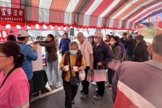 【記者蔡俊賢/台南報導】臺南市(6)日在東區假日農市辦理「國產豬肉品嚐促銷行銷推廣活動」,透過臺南市農會及台南市養豬協進會籌辦,邀集多家在地優良商家到場設攤,並於現場提供品嚐美味豬肉料理以及促銷多元豬肉產品。上午9點多開始就吸引大批民眾到場選購,其中「台南市養豬協進會」發放香腸、鹹豬肉、貢丸湯,及「鮮蒸蝦仁肉圓」發放蝦仁肉圓時段更是大排長龍,人氣爆棚。