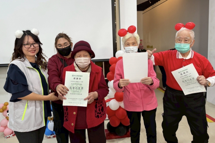 感謝長輩建構「第二個家」,團聚活動頒發「最久相伴獎」和「長青之星獎」等獎項,透過頒獎和鼓勵,兩園向長輩致謝。