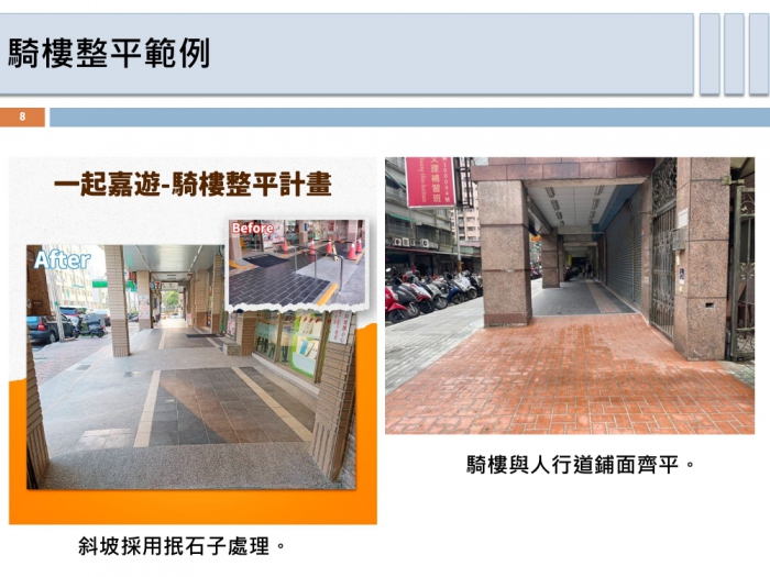 同時重新檢視交通動線並強化人車分流及機車停車空間配置,透過完善配置改善當前機車無序停放情形,使街容更整齊、安全更到位。