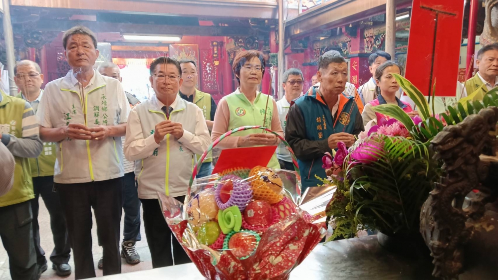上午10點左右,陳素月車隊在永靖永安宮參拜,鄉長魏碩衛率在地行政團隊首長,包括調解會主席江春男及多名代表、里長、議員陪同參香祈福,魏鄉長帶領永靖鄉親高喊「永靖好媳婦、彰化好縣長」,期許陳素月在12月15日至18日的民進黨內初選民調順利勝出,由她代表民進黨投入縣長選戰,將彰化贏回來。
