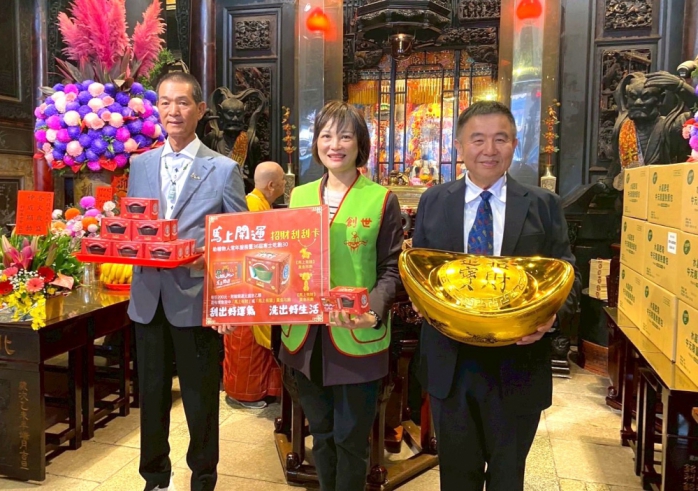 【記者陳信利/雲林報導】創世基金會為募集「植物人常年服務暨第36屆寒士吃飽30-送禮到家」活動經費,結合北港朝天宮與南僑水晶,推出「馬上開運」刮刮卡+元寶皂義賣組合,助弱勢植物人過好年。