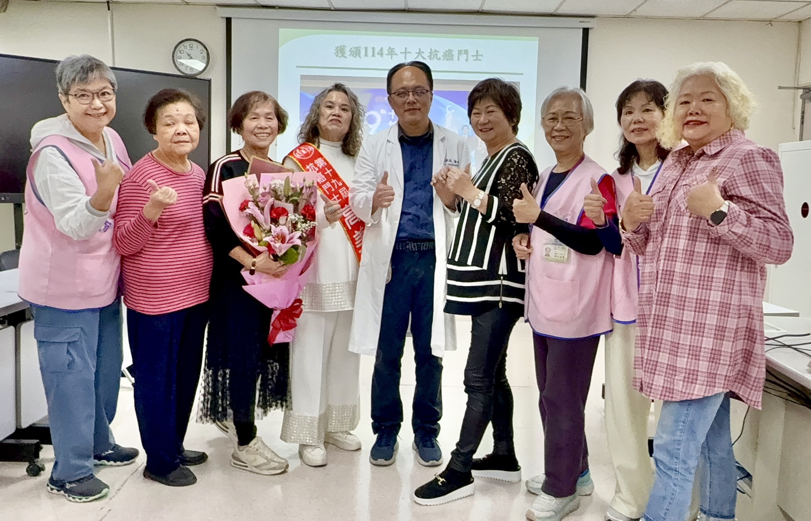 衛生福利部臺中醫院傳來喜訊,「美麗人生乳癌關懷俱樂部」創會長高美鳳,於上月底榮獲台灣癌症基金會頒發全國「十大抗癌鬥士」殊榮。曾在六年間接連罹患乳癌、子宮內膜癌與大腸癌的她,原以為已與癌症告別,未料今年初又因血尿確診腎盂癌。歷經多次抗癌考驗仍勇敢挺過,並獲頒此項榮耀,她感性表示:「這是老天爺送給我最棒的禮物!」