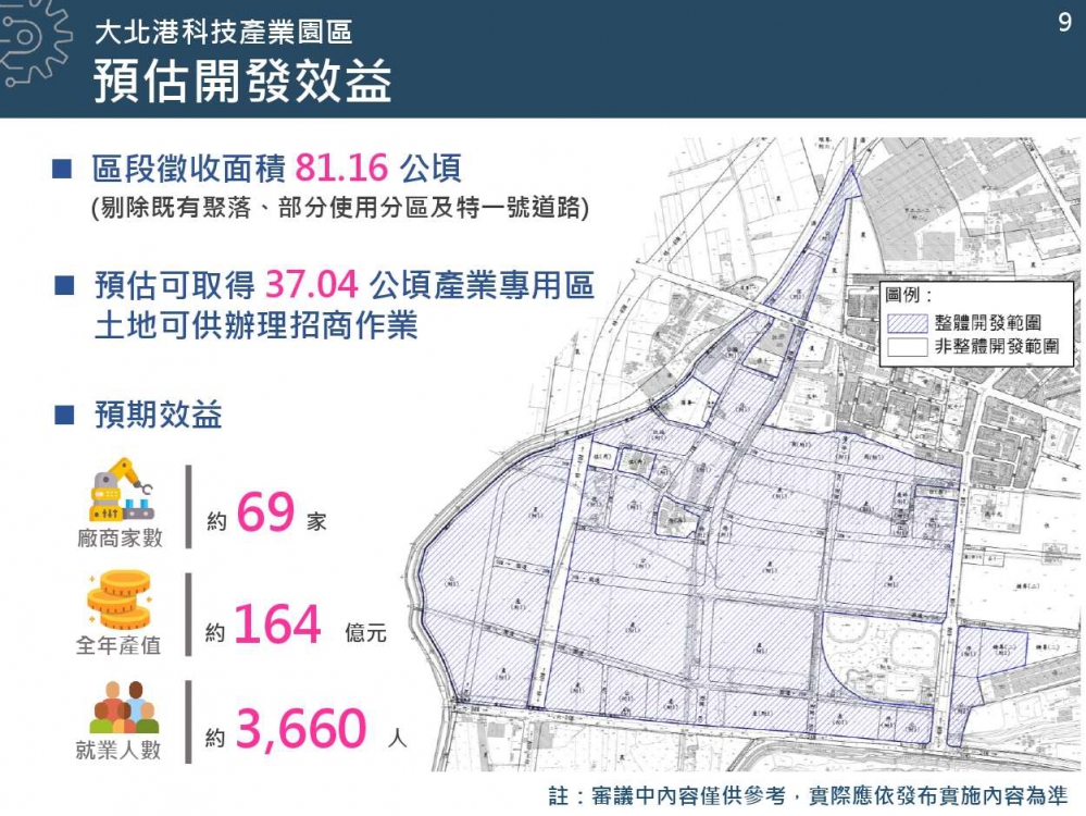 預期將引進重視ESG的科技、食品加工、生技、智慧醫材與精密製造等低污染產業。