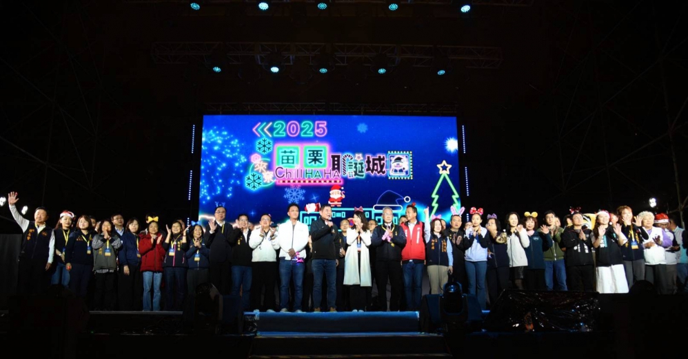 (特派員陳明/竹南報導)苗栗縣政府主辦的年度壓軸大型節慶「2025苗栗耶誕城」系列,19日晚在竹南運動公園「2025苗栗耶誕城」後,啟動以「來尞 Chill HA HA」為主題,首晚有澎澎、康康、徐懷鈺及彭佳慧等藝人接力演出,節目將延續到24日,一連6天每晚開唱的耶誕系列活動,結合音樂演出、燈光展演、市集與親子互動;縣長鍾東錦開城首夜盛情邀請全國民眾,到苗栗感受繽紛熱鬧的歲末時光。