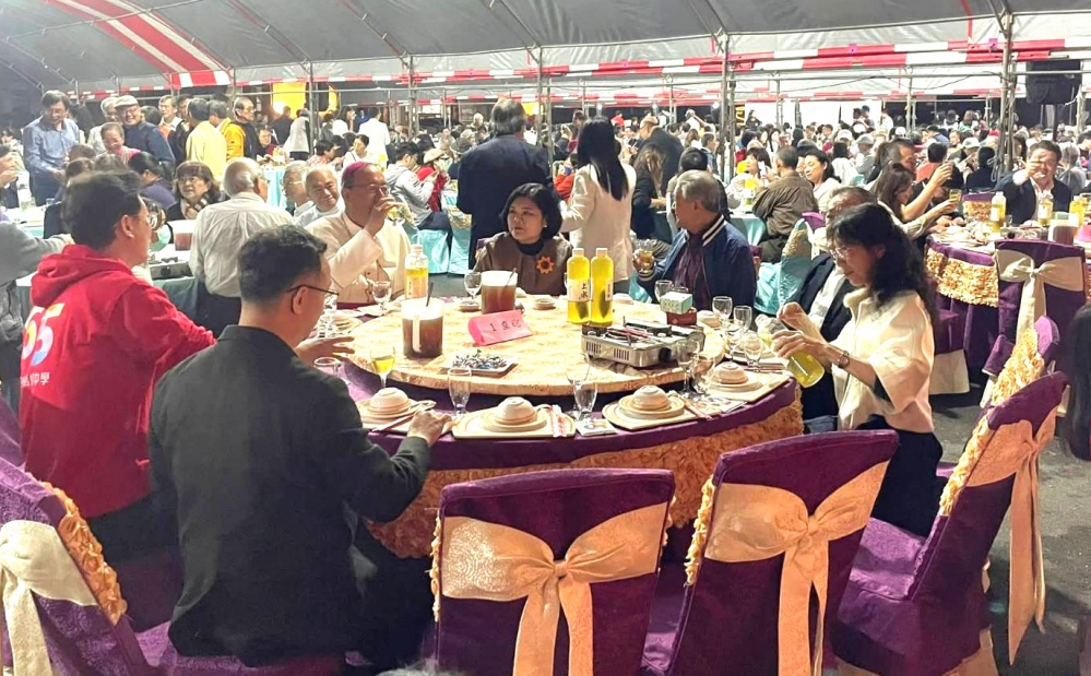 【記者陳信利/雲林報導】斗六市正心中學創校65周年,今天(20日)白天舉辦至今已超過半世紀的師生仁愛健行活動,晚間由傑出校友健豪印刷公司總經理張訓嘉及台全醫院院長林敬家,結合校友會理事長鐘瑞源,在校園席間132桌感恩餐會宴請校友及各界來賓,氣氛熱絡!