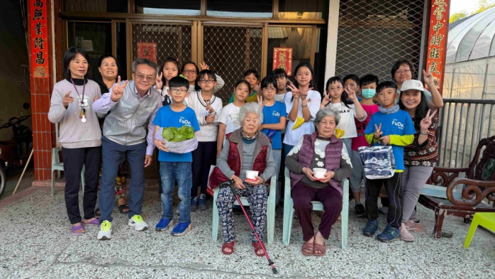 卓校長指出,福德從2023年開始推動「歲末送愛到獨老」,今年在圍爐前,五年級同學由師長引領,帶著剛採摘的蔬菜和熱騰騰火鍋,拜訪社區獨老,孩子還在長輩家演出才藝,讓阿公阿嬤不出門也能欣賞到孩童的表演。