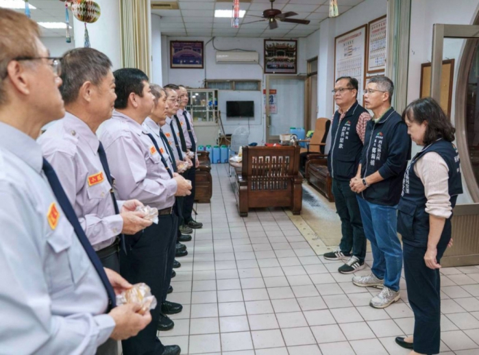 民政局表示,昨(23)晚民政局專門委員洪紹欽偕同北屯區長陳宗祈、西屯區長鄭錫禧,以及四民里長江麗慧、何安里長何唐文鈴,分別前往北屯區四民里及西屯區何安里守望相助隊關心巡守運作情形,並慰勞隊員執勤辛勞,也提醒隊員巡邏時務必留意自身安全,夜間巡守也要加強保暖並注意身體狀況,確保在安全無虞的情況下執行任務,共同守護社區治安與居民安全。