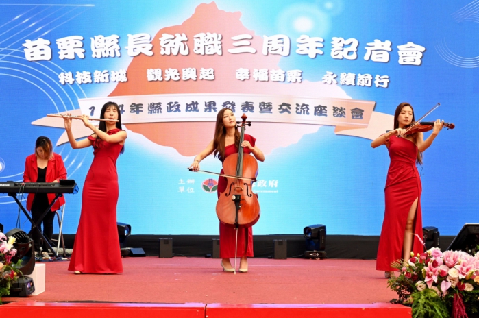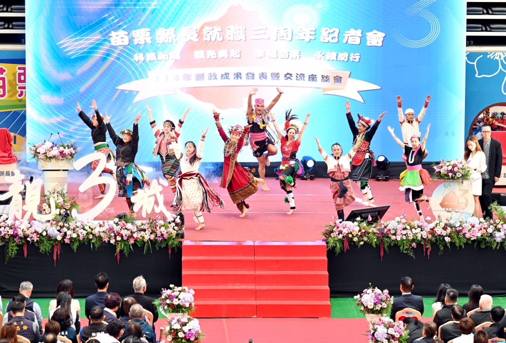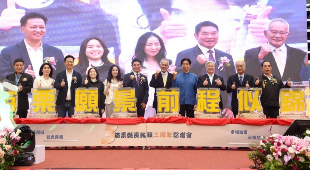 縣長強調,苗栗縣要感謝各企業的支持,尤其林光清董事長自106年來對縣府捐款已破億元,明年陽明交大校區更將全力以赴,感謝校長林奇宏以及教育部長鄭英耀,他不但大力支持更交代陽明交大不可辜負苗栗縣,所有政策施政需要中央支持,因為苗栗財政困難,中央盡量讓苗栗能夠負擔配合款,感謝行政院各級長官,目前更是苗栗縣政治史最團結的時刻,農漁會系統、社區、社團等各界的支持力挺,還有鄉親們的信任才有今天的3周年成果發表。