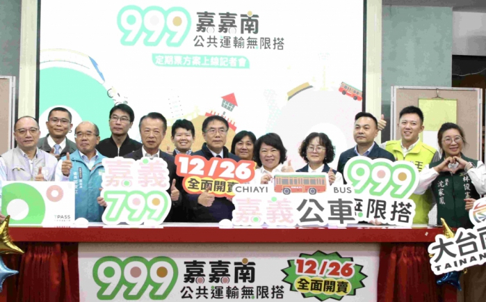 【雲嘉特派員陳信利/嘉義市報導】由嘉義市政府、嘉義縣政府及臺南市政府共同推出的嘉嘉南跨城際定期票,今天(26日)於臺南市政府舉辦「999嘉嘉南公共運輸無限搭定期票上線記者會」,由嘉義市長黃敏惠與臺南市長黃偉哲、嘉義縣長翁章梁共同出席宣布啟用。