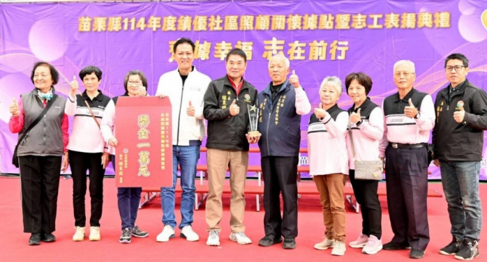績優社區照顧關懷據點中,竹南鎮塭內社區發展協會及銅鑼鄉中平社區發展協會第1次參選衛生福利部辦理114年金點獎-金點之星(團體獎)就「入圍」優選據點,竹南鎮塭內社區發展協會更「勇奪」社區金點之星(團體獎),在全國5,000多處社區照顧關懷據點中脫穎而出,競爭激烈、堪稱據點界的奧斯卡獎,實屬不易。