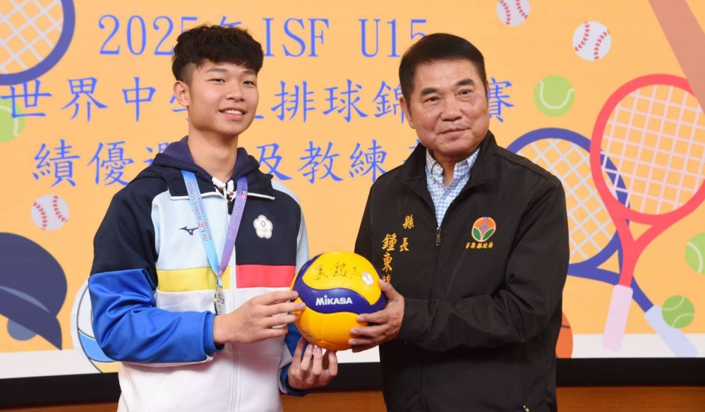 (特派員陳明/苗栗報導)苗栗縣立苑裡高中排球隊12月初代表中華台北,遠征在中國舉行的ISF U15 世界中學生排球錦標賽,在強敵環伺下仍發揮堅強實力與團隊默契,過關斬將勇奪銀牌佳績。縣長鍾東錦29日接見表揚排球隊選手與教練表現亮眼,另回應地方期待指出,正積極爭取撥用國有地設立國際標準的排球館,作為舉辦全國及國際賽事場館,讓排球運動在苗栗蓬勃發展,持續站上國際舞台發光發亮。