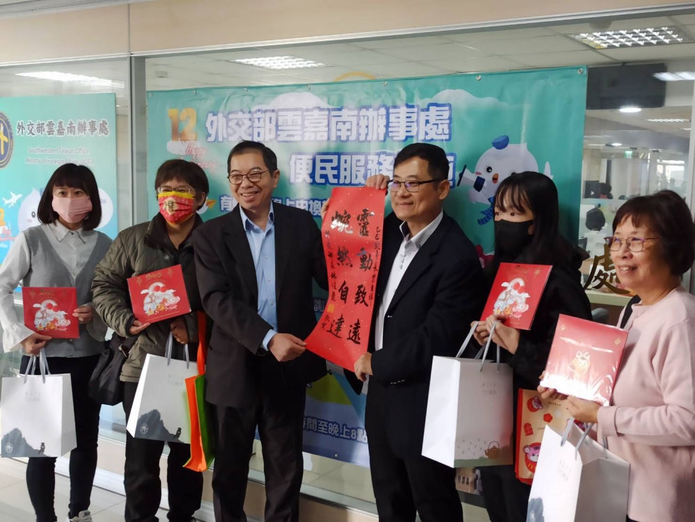 本年農曆春節前,卸任辦事處處長蕭勝中於領務大廳致贈外交部林部長題字春聯及限量紅包袋禮盒予洽公民眾,並舉辦有獎徵答及「音樂快閃」活動;同時透過嘉義正聲廣播電台專訪,宣導「有條件式線上申換護照」自7月1日實施之便民措施,廣受民眾好評。