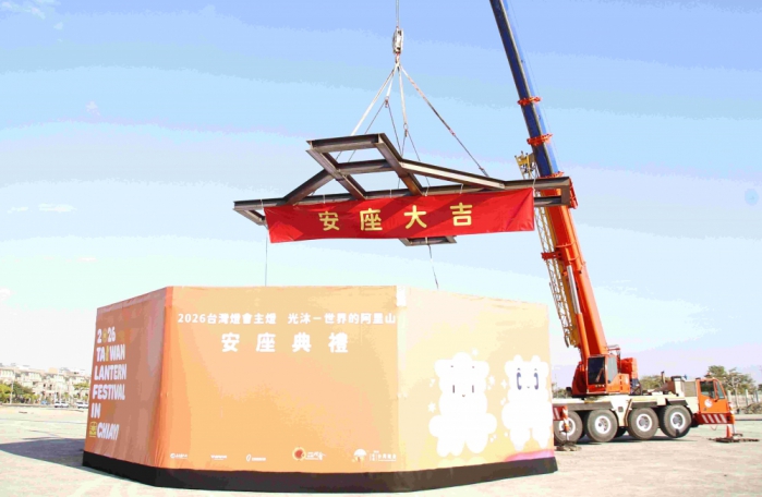 【雲嘉特派員陳信利/嘉義縣報導】2026台灣燈會明年3月3日至15日在嘉義縣登場,規劃有「主展區」及「縣府展區」(縣府前廣場及周邊場域)2大展區,主燈「光沐-世界的阿里山」今天(29日)順利安座。