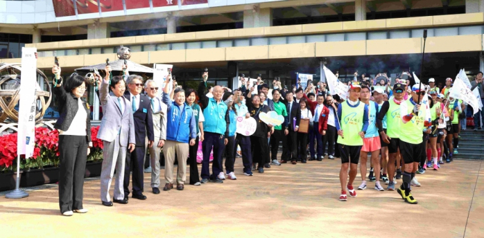 縣長張麗善表示,第九屆盲人環台為公益而跑活動12月27日從台北市起跑,預計1月11日返回台北,今天來到雲林縣政府,她感謝鍾和達總監帶領國際扶輪社3470地區社友到場加油打氣。