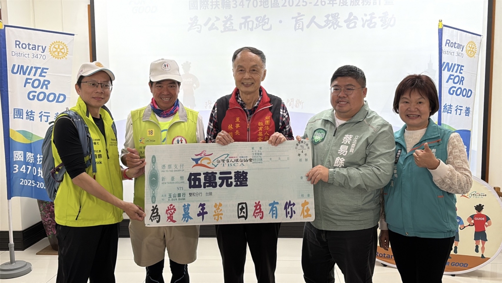 【記者張文一、任禮清嘉義報導】由台北公益路跑扶輪社、社團法人台灣盲人環台為公益而跑協會,及國際扶輪台灣12個地區共同主辦策劃的「第9屆盲人環台為公益而跑」活動,起跑第六天早上115年元旦抵達「財團法人若竹兒教育基金會」整備。每日全馬(42公里),為期16天的環台愛心長征,包括視障馬拉松好手吳春成、吳鎮安、饒賀凱、宋涵涵、李宏祐、徐薇雅、古奇哲、江松遠、香港自閉症跑者-曾載善(善仔)、日本視障者跑者保科清與日籍超馬好手關家良一等多名選手及陪跑團等共近50位參與。「鈺通大飯店」全額贊助中午餐食及捐助善款,若竹兒董事長林朋輝特別公開致謝其善舉。
