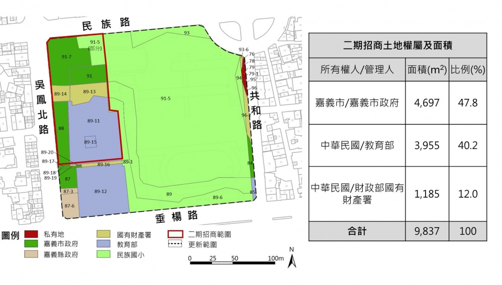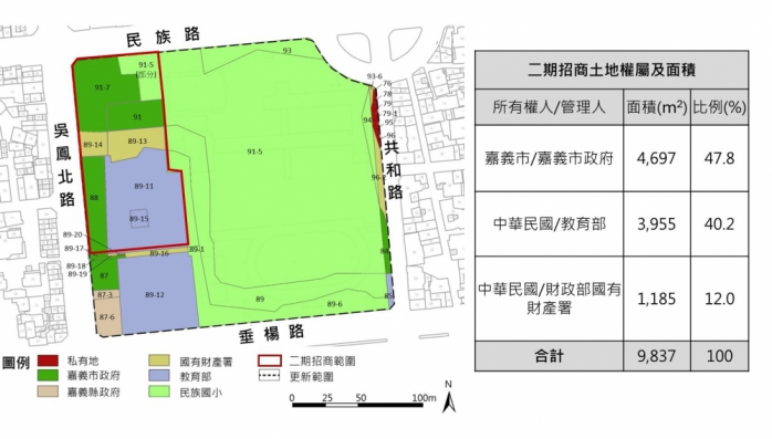 【雲嘉特派員陳信利/嘉義市報導】嘉義市政府為加速嘉市東區整體發展,活化市中心公有土地資源,辦理「嘉義市民族國小西側南門段二小段88等8筆土地公辦都市更新事業計畫」公開招商評選案,去年12月30日已正式公告招商。