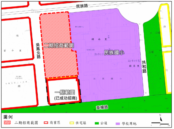 市長黃敏惠表示,「民族國小西側公辦都更二期」位處市中心,緊鄰民族路、垂楊路等主要幹道,周邊串聯文化路商圈、東市場、影城及優質文教生活圈,區位條件成熟、生活機能完整,是市中心少有兼具規模、土地坵塊完整且權屬單純的開發基地。