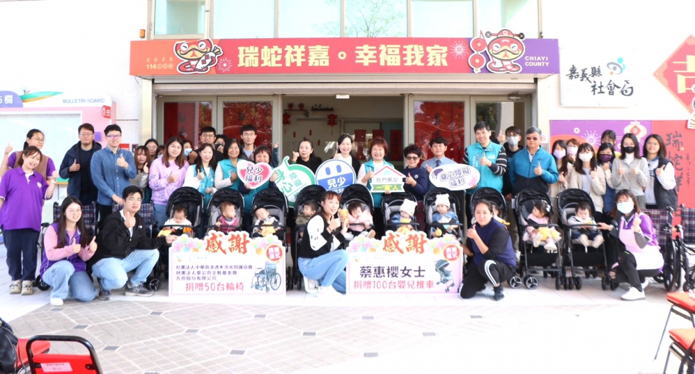 【雲嘉特派員陳信利/嘉義縣報導】嘉義縣社會局今天(5日)舉行「2026台灣燈會輪椅及嬰兒推車聯合捐贈儀式」,場面溫馨。