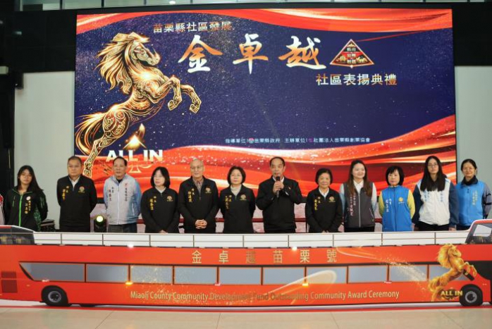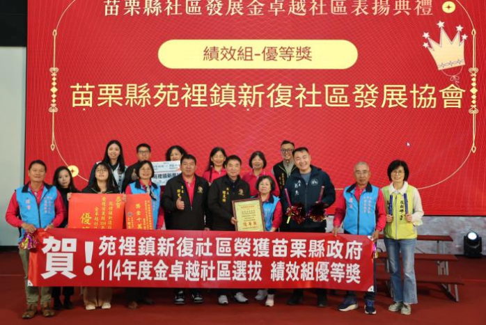 「金卓越社區獎」為衛生福利部的全國大獎,縣府社會處辦理金卓越社區選拔作業,今年共18個社區發展協會獲獎,有4個績優社區即將代表苗栗縣參加115年全國社區選拔,包括:後龍鎮水尾社區發展協會、三義鄉勝興社區發展協會、頭屋鄉明德社區發展協會、苑裡鎮新復社區社區發展協會。