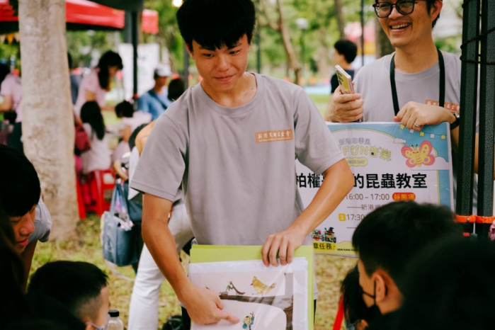 導師潘燕弘補充說明,柏權最難能可貴之處,在於其發揮興趣專長,實踐「利他」的愛鄉精神 。為了能夠讓昆蟲知識普及化,他主動於高一、高二時,回母校新港國小,籌辦多場免費的「蟲蟲底嘉夏令營」,針對國小及家長的親子昆蟲營,將研究成果轉化為社會服務的能量。在營隊中他發揮個人的興趣及知識專長,學習課程組織及活動設計能力,展現細膩且具責任感的特質,將艱澀的學術知識,轉化為生動有趣的互動教學活動,透過營隊的實施,帶領不同年齡層的學員親近自然,進而認識昆蟲 。