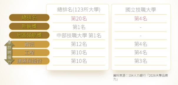 ◆資料來源:104人力銀行2026大學品牌力排名網址:https://guide.104.com.tw/career/college-brand/?typeId=m6