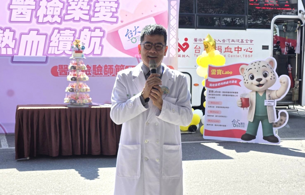 臺大醫院雲林分院院長馬惠明表示,感謝醫事檢驗師長年在幕後把關檢驗品質與輸血安全,是醫療體系不可或缺的關鍵角色,公益捐血則是社會共同參與醫療支持的重要力量。