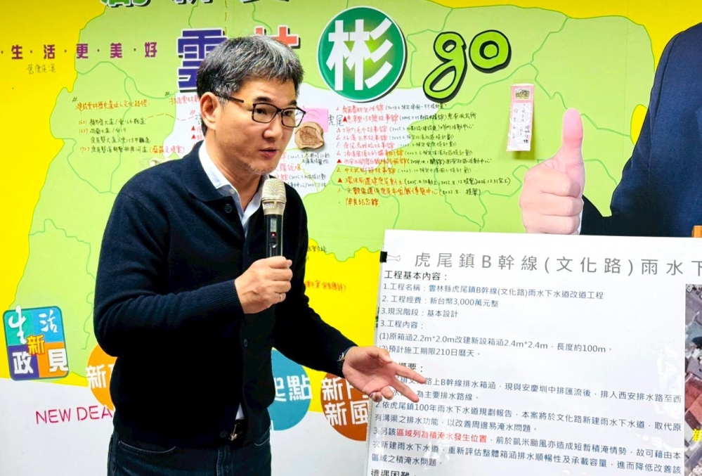 【記者陳信利/雲林報導】立委劉建國為徹底改善虎尾鎮市區淹水問題,在接獲縣議員林文彬及地方民眾陳情後,特別邀請內政部國土管理署署長吳欣修南下虎尾,實地會勘「虎尾鎮B幹線(文化路)雨水下水道改道工程」,並召集相關單位共同研商具體改善對策。