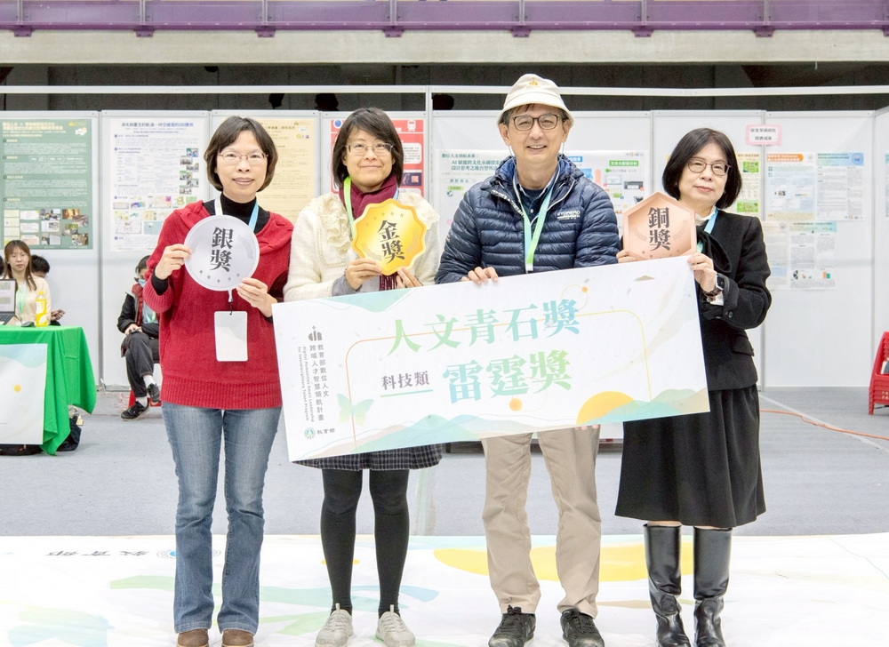 【記者張文一嘉義報導】教育部「數位人文跨域人才智慧領航計畫」1月12日在中央大學舉辦分享會,同時頒發「2025教育部數位人文青石獎」。嘉義大學李佩倫副教務長主持之「數位跨域嘉義巡禮 再現諸羅人文風華」計畫,展現教研實踐卓越成果,勇奪教研獎「人文類--雲澤獎」金獎、「人文類--文心獎」金獎、「科技類--雷霆獎」銀獎及學研獎「教育類--凌霄獎」銀獎,另有3位同學獲選「優秀青年學者」,展現嘉大跨域教學實力。