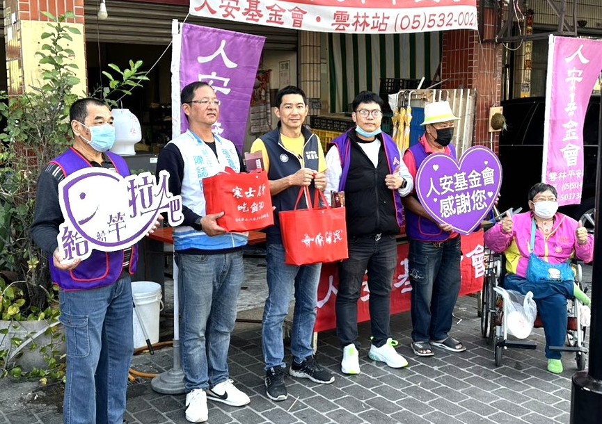 雲林縣議員黃勝志、立委張嘉郡服務處副主任陳誌陽等人到場關心,與雲林平安站站長黃昱瑋及志工們,逐一發放物資與新年祝福,並與弱勢鄉親親切互動,以實際行動讓弱勢民眾感受到不被遺忘的溫暖。