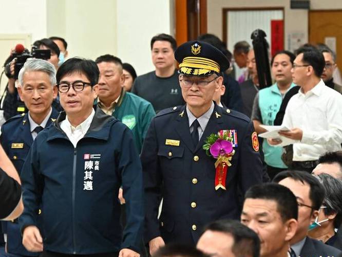 「卸、新任局長、分局長、大隊長聯合交接典禮」,由市長陳其邁擔任布達主持人,首先進行卸新任局長交接,由警政署副署長李文章擔任監交人。