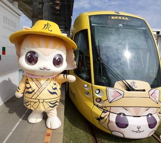【記者陳信銘/高雄報導】近年媽祖繞境文化成為潮流,高雄捷運公司發揮創意,由高捷蜜柑站長攜手北港朝天宮,首創台灣神界與貓界的跨界聯名,今(24)天起推出輕軌聯名彩繪列車「蜜柑站長萌虎平安號」,及各類可愛的周邊紀念品;高捷董事長楊岳崑並許願,今年平均日運量能突破20萬人次!