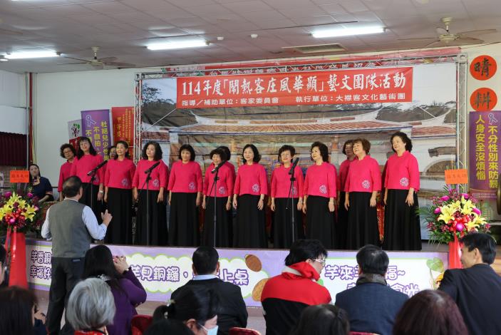 大襟客客家文化藝術協會創會理事長為賴仁政老師,他長期投入山歌、採茶戲與八音等傳統藝術,讓客家音樂得以世代流傳,108年更榮獲客家貢獻獎「傑出成就獎—藝術文化類」殊榮,同時他帶領協會成員參加各地客家歌謠比賽,為大小賽事的常勝軍,還參與過榮興客家採茶劇團客家歷史大戲「吳湯興」的演出。