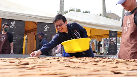 此外,東勢客家文化園區廣場同時也有「一根蘿蔔」團隊為推廣客家菜脯製作方式與實作教學,於曬蘿蔔的同時向民眾分享蘿蔔的故事。「一根蘿蔔」團隊由東勢區農會輔導,去年代表中市參與「114年度全國青農創新加值團隊經營競賽」榮獲全國第1名佳績。
