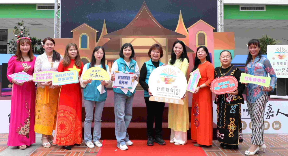 2026台灣燈會「進嘉門.伊嘉人」新住民燈區,將於3月3日至15日在嘉義縣太子大道&信義一路交叉口登場。