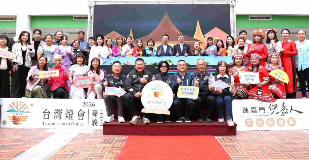 【雲嘉特派員陳信利/嘉義縣報導】嘉義縣政府今天(26日)在縣府中庭舉辦「2026台灣燈會—新住民燈區」宣傳記者會,以「進嘉門・伊嘉人」為主題,透過一場情感豐沛的開場走秀,揭開燈區策展理念!