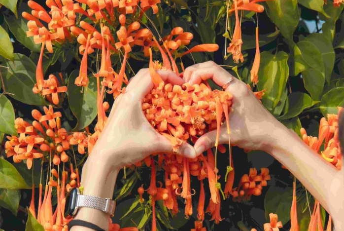 【雲嘉特派員陳信利/嘉義市報導】炮仗報喜迎新春,位於嘉義市區的農業部嘉義農業試驗分所外,長達百公尺炮仗花正值盛開期,一串串橘黃色花朵如春節炮竹般熱烈綻放,沿著外牆層層垂落、傾瀉而下,交織成壯觀「橘色花瀑」,應景喜氣又壯觀,吸引遊客打卡駐足!